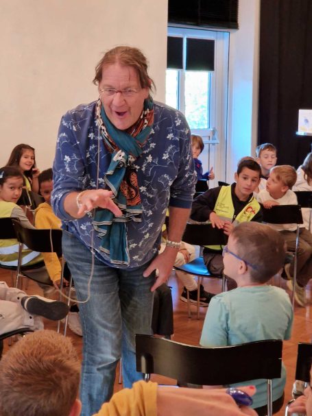 Ich komme mit einem Koffer voller Bücher und Geschichten, darin ist die besondere Lolo, die Dachziegelbande, die einsame Schnecke, Marijke mit ihrem U-Boot, das blaue Herz von Finn, viele viele Sommersprossen, Bolzena mit ihrem Glück, der Geräuschesammler und noch viel mehr!