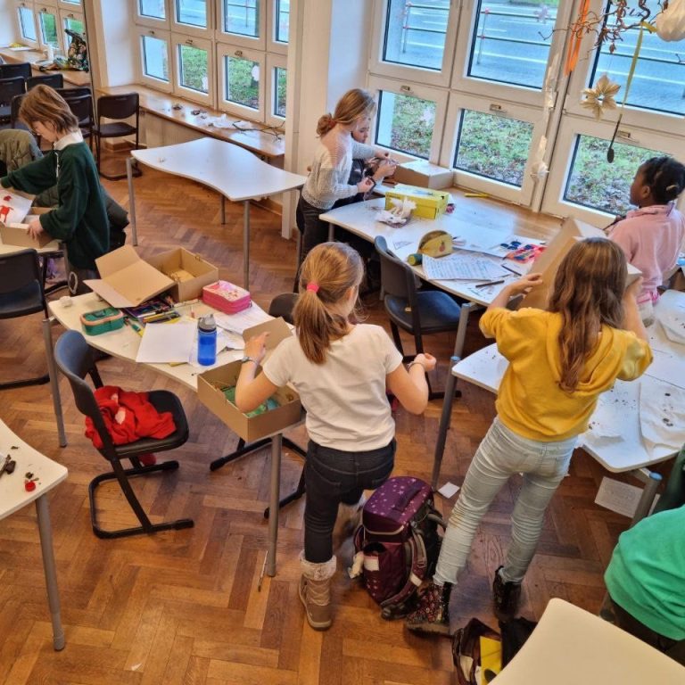 Geschichten erfinden, schreiben, kochen und dann diese frische wohl- duftende phantastische Welt mit Hilfe von Papier, Pappe, Draht, Schnur etc. in Kisten/Kistchen bauen, erschaffen und zum Leben erwecken, eine Geschichtenbühne in einer Geschichtenkiste.